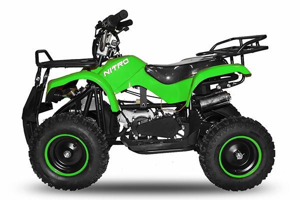 De Torino mini kinderquad is voorzien van 6 inch banden en een elektrische startsysteem. Daarnaast beschikt de quad over een sterke 49cc motor met 3 PK's en een dubbele sportuitlaat. De quad heeft zowel aan de voorkant als aan de achterkant een bagagedrager. Daarnaast beschikt deze quad ook over grote voetplaten. De velgranden zijn meegespoten in de kleur van de quad. Ook is deze kinderquad voorzien van een elektrische startsysteem + easy trekstarter. Dat wil zeggen dat de motor direct start met 1 á 2 keer trekken aan de koord van de trekstarter!